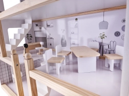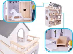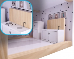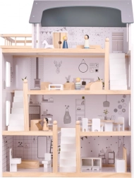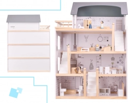 Dom ma aż cztery piętra i oferuje mnóstwo przestrzeni do zabawy! Drewniany taras na najwyższym piętrze dodaje całemu domowi uroku. Wśród wielu różnych pomieszczeń znajdują się łazienka, pracownia, salon, jadalnia z aneksem kuchennym i sypialnia. Każde z nich jest w pełni wyposażone i gotowe na przyjęcie nowej rodziny lalek. Dzięki dużym rozmiarom mieszczą się wewnątrz nie tylko najmniejsze lalki, więc nie trzeba się obawiać, że ulubiony przyjaciel twojego dziecka nie weźmie udziału w zabawie!