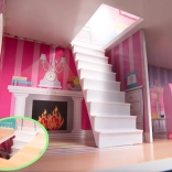 Domek oferuje trzy poziomy z pięcioma pomieszczeniami, schodami i balkonami. Kolorowe nadruki ścian i podłóg tworzą przytulną atmosferę do zabawy w wyobraźni.