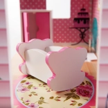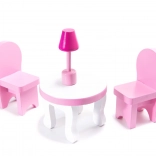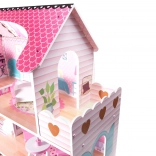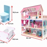 Drewniany domek dla lalek 70 cm z oświetleniem LED – różowy, MDF, z mebelkami
