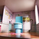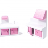 W zestawie 9 elementów wyposażenia: szafa, kołyska, lampa, 2 krzesła, stół, kuchnia z okapem, szafka ze zlewem i toaleta – gotowe do natychmiastowej zabawy.