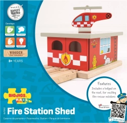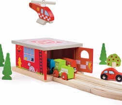 Rozszerz dziecięcy świat kolejek o dynamiczne depo strażackie z lądowiskiem. Szczegółowe nadruki, konstrukcja przelotowa oraz dołączony helikopter zachęcają do emocjonujących historii i misji ratunkowych. Stacja została starannie wykonana z wysokiej jakości drewna i spełnia europejskie normy bezpieczeństwa.