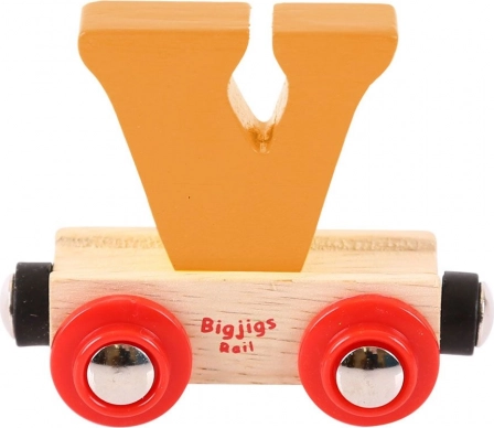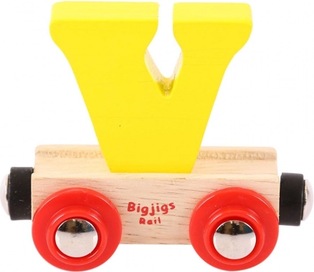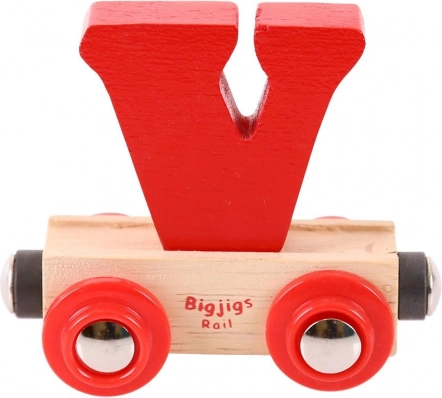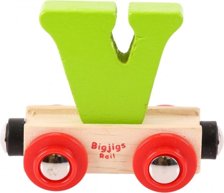 Drewniany wagonik z literą V – BIGJIGS Rail