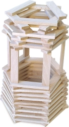 Ta ponadczasowa drewniana układanka konstrukcyjna oferuje dzieciom nieskończone możliwości tworzenia – od wież i mostów po oryginalne modele architektoniczne. Jednolite wymiary elementów (10,5 × 2 × 0,7 cm) umożliwiają stabilne konstrukcje bez użycia elementów łączących. Dzięki naturalnemu wykończeniu zabawa jest nie tylko przyjemna, ale też edukacyjna.