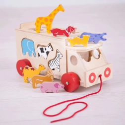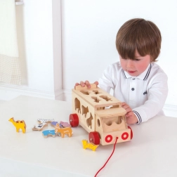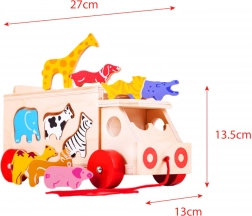 - Drewniana ciężarówka do ciągnięcia i sorter kształtów ze zwierzątkami