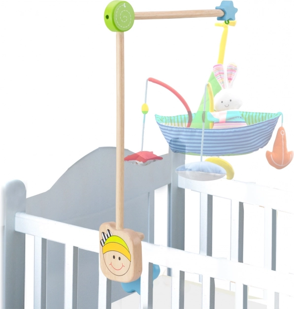 Solidna drewniana konstrukcja minimalizuje wibracje i kołysanie, dzięki czemu karuzela jest zawieszona bezpiecznie i na idealnej wysokości nad maluszkiem.