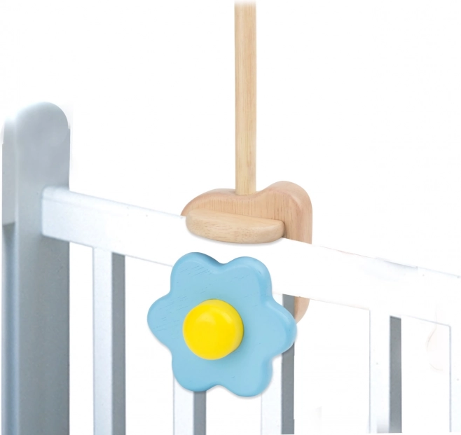 Elegancki drewniany uchwyt do zawieszenia karuzeli dziecięcej zaprojektowano z myślą o szybkiej instalacji i pewnym mocowaniu do barierki łóżeczka. Lite drewno zapewnia stabilność i długą żywotność, a dekoracyjny element z kwiatkiem dodaje łóżeczku figlarnego charakteru.