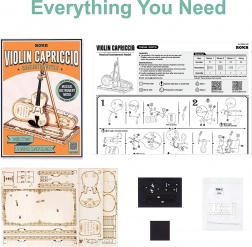 Model przeznaczony jest do ekspozycji, nie jest interaktywny i nie ma ruchomych części. Montaż jest łatwy i poradzi sobie z nim nawet początkujący – dzięki jasnej, szczegółowej instrukcji oraz precyzyjnym wycięciom elementów. Świetny prezent dla dzieci od 8 lat, miłośników muzyki i kolekcjonerów drewnianych modeli.