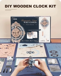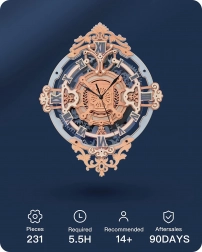 Ten model DIY łączy relaksującą przyjemność składania z praktyczną funkcją. Po złożeniu zegar ścienny staje się elegancką dominantą pomieszczenia – z rzymskimi cyframi, ozdobnymi ornamentami i widocznymi przekładniami, które podkreślają jego vintage’owy charakter.