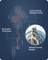 Delektuj się kojącym tykaniem i płynnym ruchem wahadła. Otwarta konstrukcja z przekładniami podkreśla mechaniczne piękno zegara i wspiera vintage’owy styl wnętrza.