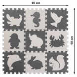 Piankowa dziecięca mata edukacyjna puzzle zwierzątka, szara 85 × 85 cm, 9 elementów