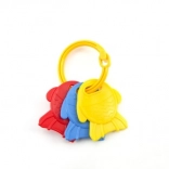 Wesoła dziecięca grzechotka w kształcie kluczy z trzema plastikowymi brelokami ucieszy każde niemowlę. Wspiera rozwój małej motoryki, percepcję wzrokową i dostarcza zabawnych bodźców dźwiękowych. Kolorowy miks – nie ma możliwości wyboru konkretnego koloru, wysyłamy zgodnie z dostępnością magazynową.