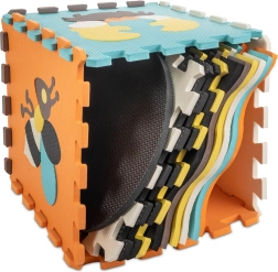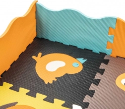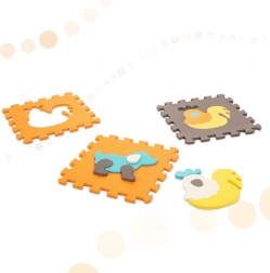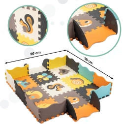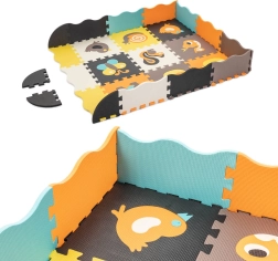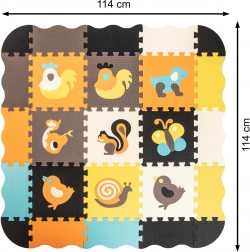Ta duża piankowa mata składa się z 25 części (9 głównych elementów z wyjmowanymi zwierzątkami i 16 ramek brzegowych). Dzięki wyraźniejszej fakturze powierzchni oraz kontrastowym kolorom naturalnie stymuluje wzrok i dotyk. Miękka pianka EVA amortyzuje upadki przy pierwszych krokach i chroni przed chłodem od podłogi.