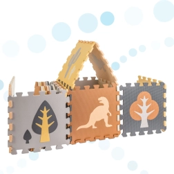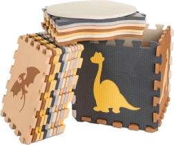 Ta piankowa mata puzzle wspiera rozwój dziecięcej wyobraźni i motoryki. Wyjmowane kształty dinozaurów działają jak zabawny sorter – dzieci trenują rozpoznawanie kształtów i koordynację, wkładając elementy z powrotem na miejsce. Kontrastowe kolory oraz przyjemne, teksturyzowane wykończenie powierzchni stymulują wzrok i dotyk.