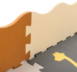 Pianka EVA o grubości 1 cm amortyzuje upadki i izoluje od zimnej podłogi. Powierzchnia antypoślizgowa zwiększa stabilność podczas zabawy i raczkowania.