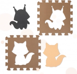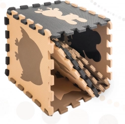 Miękka i bezpieczna mata dla dzieci z wytrzymałej pianki EVA w neutralnych odcieniach beżu i brązu. Zestaw 9 elementów z wyjmowanymi kształtami zwierząt tworzy powierzchnię 85 × 85 cm i umożliwia układanie także form 3D. Izoluje od chłodu, tłumi uderzenia, jest wodoodporna i łatwa w czyszczeniu. Idealna na pierwsze kroki, zabawę i naukę kształtów.