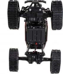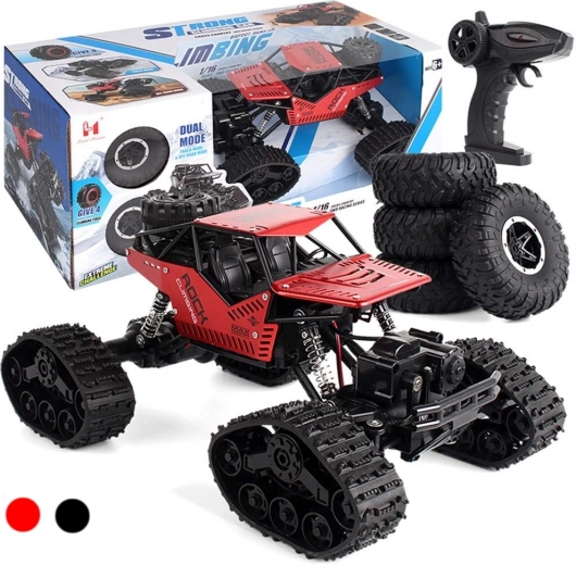 Ciesz się dynamiczną jazdą z RC rock crawlerem 1:16, zaprojektowanym do wymagającego terenu. Solidna konstrukcja, wysokiej jakości amortyzatory oraz możliwość wyboru między gumowymi kołami a gumowymi gąsienicami gwarantują zabawę na każdej nawierzchni – od ogrodu po kamieniste ścieżki.