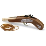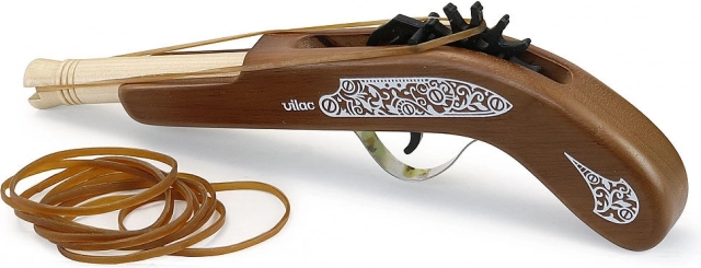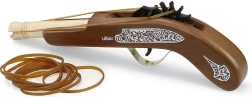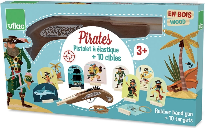 Drewniana pistolet piracki od marki Vilac to idealna zabawka dla małych entuzjastów przygód pirackich. Pozwala dzieciom ćwiczyć strzelanie do celu za pomocą bezpiecznych gumek, które są częścią opakowania.