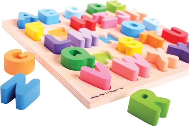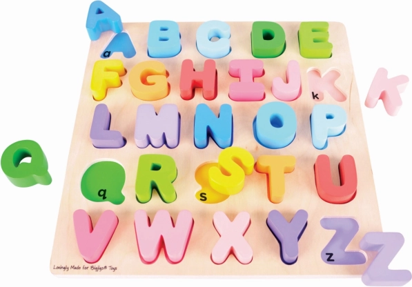 Duża drewniana alfabet Bigjigs oferuje dzieciom wyjątkową możliwość zapoznania się z literkami dzięki zabawnej i edukacyjnej funkcji. Każda litera jest wesoło kolorowa, co ułatwia rozpoznawanie i zapamiętywanie. Puzzle wykonane jest z wysokiej jakości materiałów, jest bezpieczne i idealne dla małych dziecięcych rąk.