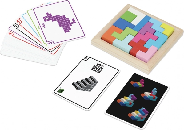 Zagadki Vilac Tangram z drewna to doskonałe narzędzie do rozwijania kreatywności i logicznego myślenia u dzieci. Zestaw zawiera 50 różnych kart z ilustracjami, według których można budować unikalne kształty geometryczne. Dzięki możliwości układania 2D i 3D oferuje zróżnicowane poziomy trudności, dlatego nadaje się zarówno dla początkujących, jak i bardziej zaawansowanych graczy.