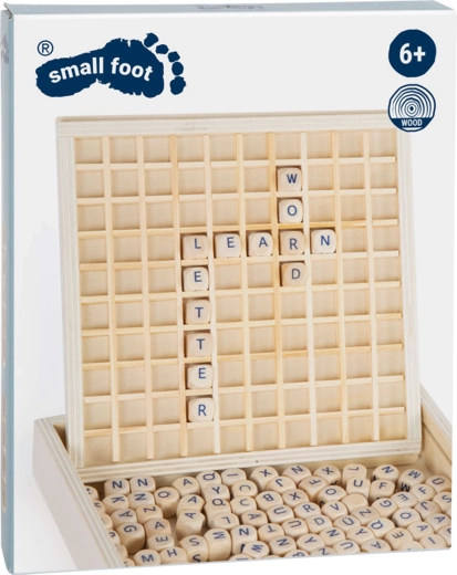 Po zakończeniu gry wszystkie elementy łatwo schowasz do zamykanego drewnianego pudełka. Zestaw zawiera 145 kostek z literami, dzięki czemu możesz tworzyć wiele krzyżujących się słów i naturalnie rozwijać umiejętności językowe.