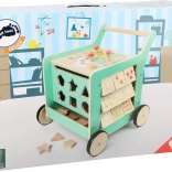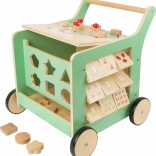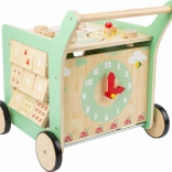 Drewniana konstrukcja i wielofunkcyjny design wspierają rozwój kreatywności i umiejętności motorycznych dzięki zintegrowanemu systemowi hamowania, tablicy do rysowania i zegarowi edukacyjnemu.