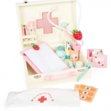 Ten wysokiej jakości drewniany lekarski kuferek Small Foot Isabel jest idealny do dziecięcych zabaw w zawody. Zestaw zawiera 24 elementy akcesoriów, w tym tekstylną opaskę z czerwonym krzyżem oraz kolorowe narzędzia lekarskie z truskawkowym motywem, które zachwycą każde dziecko.