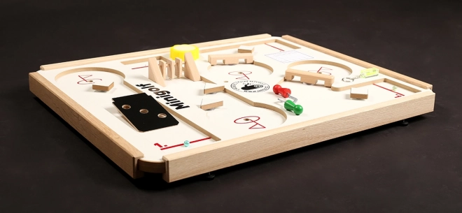 Odkryj zabawę, która się nie nudzi: stołowy minigolf z dowolnie rozmieszczanymi przeszkodami na czterech torach. Dzięki mocowaniu na przyssawki stworzysz za każdym razem inaczej wymagającą trasę. Świetny do domowej zabawy, a także do świetlic szkolnych i klubów. Wysoka jakość wykonania i wyprodukowano w Czechach.