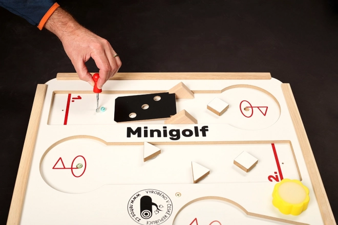 Stołowy minigolf oferuje oryginalną rozrywkę dla dzieci i dorosłych. Cztery tory z przeszkodami na przyssawkach umożliwiają dowolne rozmieszczenie i nieskończoną liczbę kombinacji. Każda gra jest inna, trenuje spostrzegawczość, cierpliwość i motorykę małą. Dzięki solidnym materiałom idealnie nadaje się do częstej gry w domu i w szkołach.