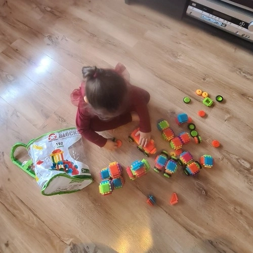 Zestaw zawiera 192 elementy w różnych kształtach i kolorach, które rozwijają logiczne myślenie, zręczność i cierpliwość. Wytrzymały materiał ABS zapewnia długą żywotność oraz stabilność zbudowanych modeli.