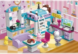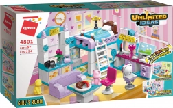 Zestaw QMAN Pokój dziewczęcy 3w1 daje dzieciom nieskończone możliwości budowania i tworzenia historii. Z jednego kompletu zbudujesz pełny pokój z łóżkiem piętrowym, biurkiem i dekoracjami albo przebudujesz go na przytulny salon czy jadalnię. Żywe kolory i dopracowane dodatki inspirują do długiej, kreatywnej zabawy.