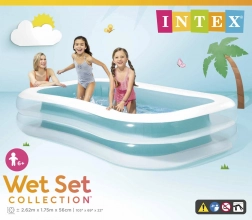 Ciesz się latem z przestronnym, rodzinnym basenem INTEX Swim Center o wymiarach 262 × 175 × 56 cm. Oferuje 2 komory powietrzne z zaworami do szybkiego nadmuchiwania i spuszczania powietrza, trwały materiał 0,30 mm oraz pojemność 770 l. W zestawie znajduje się także zestaw naprawczy.