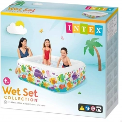 Nadmuchiwany basen inspirowany podwodnym światem to idealny dodatek na letnie dni. Wykonany z wysokiej jakości winylu o grubości 0,28 mm, co gwarantuje jego trwałość i długą żywotność. Dzięki łatce naprawczej dołączonej do zestawu jest gotowy na nieprzewidziane sytuacje.