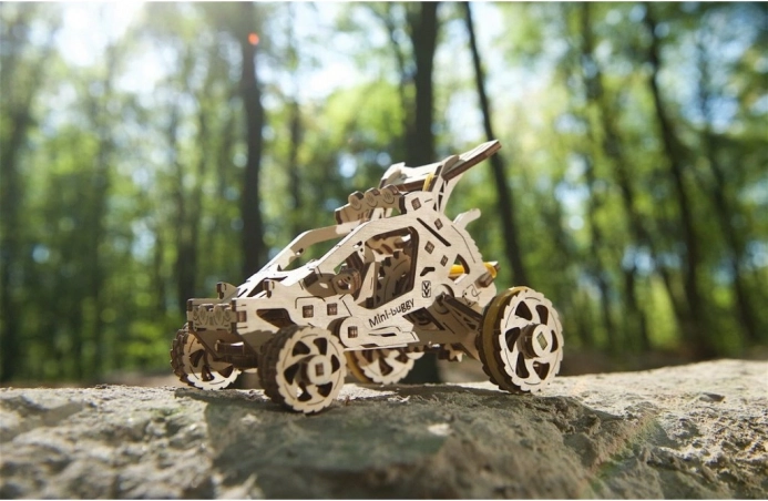 Drewniane mechaniczne puzzle 3D mini buggy UGEARS, 80 elementów