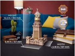 Zestaw zawiera 340 precyzyjnie wyciętych drewnianych elementów oraz szczegółową instrukcję. Z montażem poradzą sobie także bardziej uzdolnieni początkujący, a model zapewni dość wyzwań również zaawansowanym. Zasilanie można poprowadzić opcjonalnie przez USB‑C lub 3× AA (brak w opakowaniu), dzięki czemu łatwo wkomponujesz model w dowolną przestrzeń.