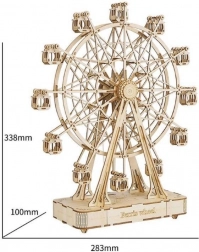 Ta elegancka pozytywka w formie 3D układanki wiernie przedstawia klasyczny diabelski młyn i po nakręceniu odtwarza znaną melodię. Dzięki wysokiej jakości 18‑tonowemu mechanizmowi dźwięk jest czysty i przyjemnie donośny. Model dostarczany jest w stanie niezłożonym i zawiera szczegółową instrukcję montażu, więc budowa sprawi przyjemność także mniej doświadczonym konstruktorom.