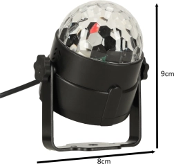 Kula disco wykorzystuje 3x1W LED, które tworzą szeroką gamę efektów kolorystycznych.