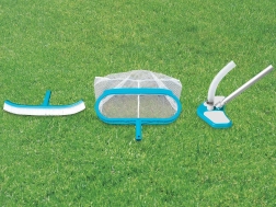 Zestaw zawiera siatkę, odkurzacz i szczotkę, które zaspokoją wszystkie potrzeby czyszczenia basenu.