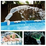 Ciesz się wieczorną kąpielą z magicznym efektem świetlnym. Fontanna INTEX tworzy dekoracyjny strumień wody z podświetleniem LED w czterech kolorach (biały, czerwony, niebieski, zielony), poprawia cyrkulację i natlenienie wody, a tym samym wspiera skuteczność chemii basenowej. Dzięki hydrogeneratorowi nie wymaga zewnętrznego zasilania – światło włącza się automatycznie przy przepływie wody.