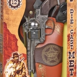 Kowbojski zestaw do zabawy z rewolwerem i odznaką szeryfa