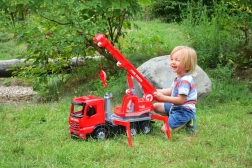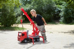 Ten czerwony żuraw samochodowy MERCEDES ACTROS marki Lena zachwyci wszystkich małych budowniczych. Dzięki obrotowemu ramieniu, działającej wyciągarce i linie, wysuwanym nogom stabilizującym oraz klinom do zabezpieczenia kół, zapewnia dzieciom autentyczną i bezpieczną zabawę z realistycznymi funkcjami. Został wyprodukowany w Czechach z wytrzymałego plastiku i nadaje się do użytku w pomieszczeniach oraz na zewnątrz.