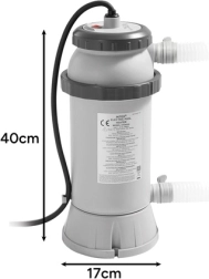 Ciesz się dłuższym sezonem kąpielowym z elektrycznym podgrzewaczem wody INTEX 3 kW. Urządzenie zaprojektowano do popularnych basenów naziemnych serii Easy Set i Metal Frame o średnicy 244–457 cm i łatwo włącza się pomiędzy filtrację a basen bez jakichkolwiek przeróbek. Dzięki szybkiej instalacji w 5 minut oraz zasilaniu 230 V podgrzewacz jest natychmiast gotowy do użycia.