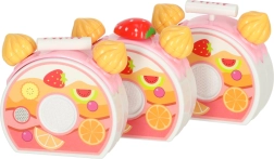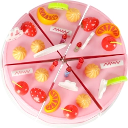 Tort składa się z 6 kawałków połączonych rzepami. Dzieci mogą go bezpiecznie „kroić” plastikowym nożem i podawać na talerzykach.