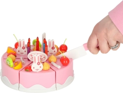 Odkryj magię urodzinowego przyjęcia każdego dnia. Dziecięcy różowy tort z 6 kawałków z napisem „Happy Birthday” można łatwo rozłożyć i ponownie złożyć dzięki rzepom. Mali kucharze udekorują go według nastroju – świeczkami, króliczkami i kolorowymi owocami – i podadzą na talerzykach.