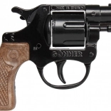 Metalowy policyjny rewolwer na kapiszony łączy realistyczny wygląd z bezpiecznym wykonaniem dla dzieci. Dzięki metalowej konstrukcji jest trwały i wygląda wiarygodnie, a pomarańczowa końcówka wyraźnie odróżnia zabawkę od prawdziwej broni. Kompaktowe wymiary 13 × 8,5 cm zapewniają wygodny chwyt dla mniejszych dłoni.