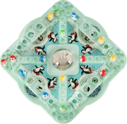 Kwadratowa plansza mieści się na każdym stole i jest idealna także w podróży. Kolorowe pionki w kształcie pingwinów dla 2–4 graczy.
