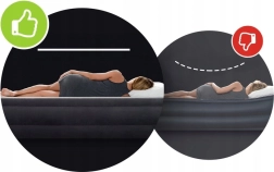 Opatentowana Dura‑Beam Fiber Technology z systemem wewnętrznych komór wspiera ergonomiczną pozycję ciała, równomiernie rozkłada ciężar i pomaga zapobiegać punktom nacisku oraz bólom pleców. Zawór Boston pozwala na szybkie pompowanie i spuszczanie powietrza, dzięki czemu łatwo przygotujesz materac dla gości lub do namiotu.