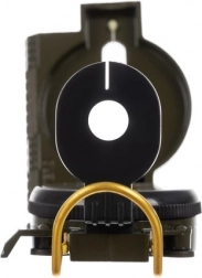 Składana pokrywa z wąską szczeliną celowniczą, cienka nitka celownicza oraz mała lupa pod muszką zapewniają precyzyjny odczyt kątów i pewne prowadzenie trasy.
