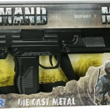 Odkryj klasyczną dziecięcą zabawę z wysokiej jakości policyjnym pistoletem maszynowym na kapiszony. Ten model łączy wytrzymały metalowy materiał i czarny design, dzięki czemu wygląda realistycznie i wytrzymuje nawet intensywniejszą zabawę. Dzięki magazynkowi na 12 kapiszonów dzieci cieszą się dłuższą akcją bez częstego uzupełniania.