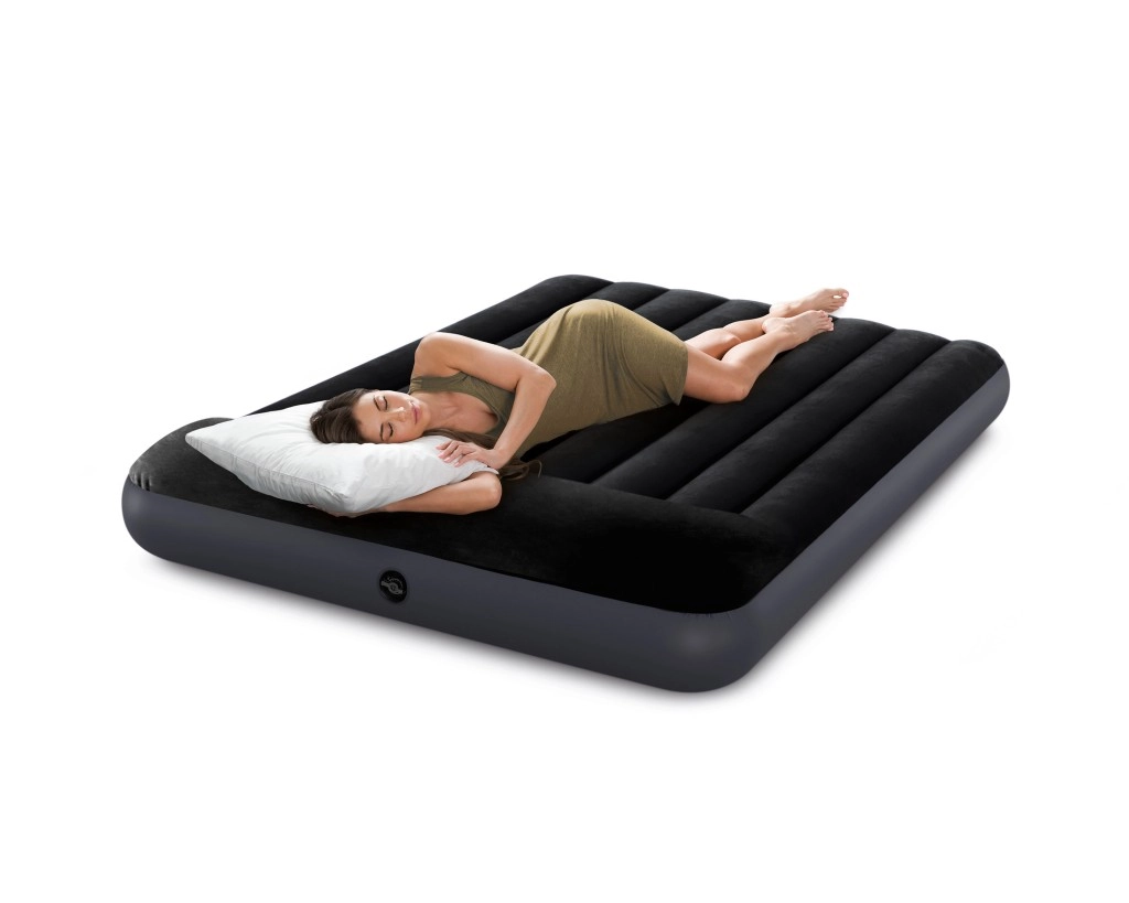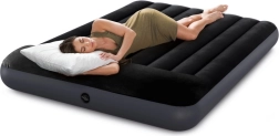 Szukasz praktycznego rozwiązania dla gości albo wygodnego spania w podróży? Ten materac dmuchany w rozmiarze Full łączy trwały winyl z delikatną, antypoślizgową powierzchnią dla lepszego komfortu i higieny. Zintegrowany, podwyższony zagłówek zapewnia naturalne podparcie głowy i odcinka szyjnego, dzięki czemu nie potrzebujesz dodatkowej poduszki.