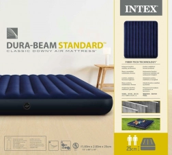 Dmuchany materac INTEX został zaprojektowany tak, aby zapewniać maksymalny komfort i łatwą obsługę. Dzięki opatentowanej technologii Dura-Beam Fiber jest niezwykle trwały i niezawodny. Zawór Boston umożliwia łatwe pompowanie i spuszczanie powietrza w ciągu kilku minut. W zestawie łatka naprawcza na wypadek drobnych uszkodzeń.